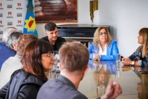 El Intendente estuvo acompañado por la jefa de Gabinete, Dra. Estefanía Franco, y la secretaria de Mujeres, Género y Diversidad, Laura De Peri, entre otros funcionarios que participaron del encuentro realizado en el Salón Mariano Moreno.