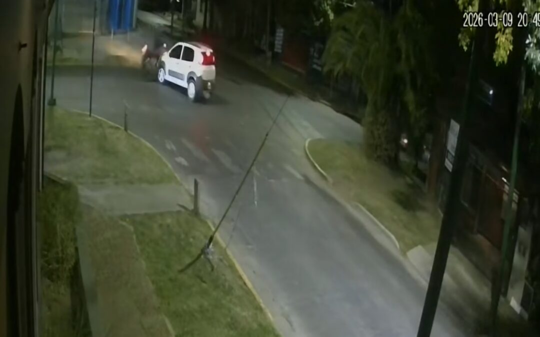 Un Fiat Uno, de color blanco, que circulaba por la calle Paul Groussac al llegar al cruce, avanzó para ingresar a la avenida Ratti; en ese momento, por la avenida circulaba una motocicleta a alta velocidad que cruzó raudamente.