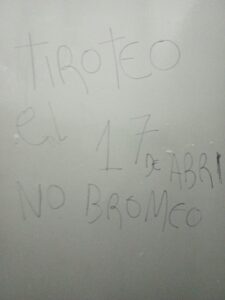«Tiroteo, el 17 de Abril, no bromeo», se escribió en uno de los baños de varones del colegio ECEA de Ituzaingó. El escrito fue hallado ayer antes del mediodía.