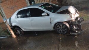 Al arribar, los efectivos observaron a los sospechosos darse a la fuga en un Toyota Etios gris. Así, se inició una persecución que finalizó cuando el vehículo colisionó contra un poste en Larralde y Escalada, donde fue detenido el conductor.
